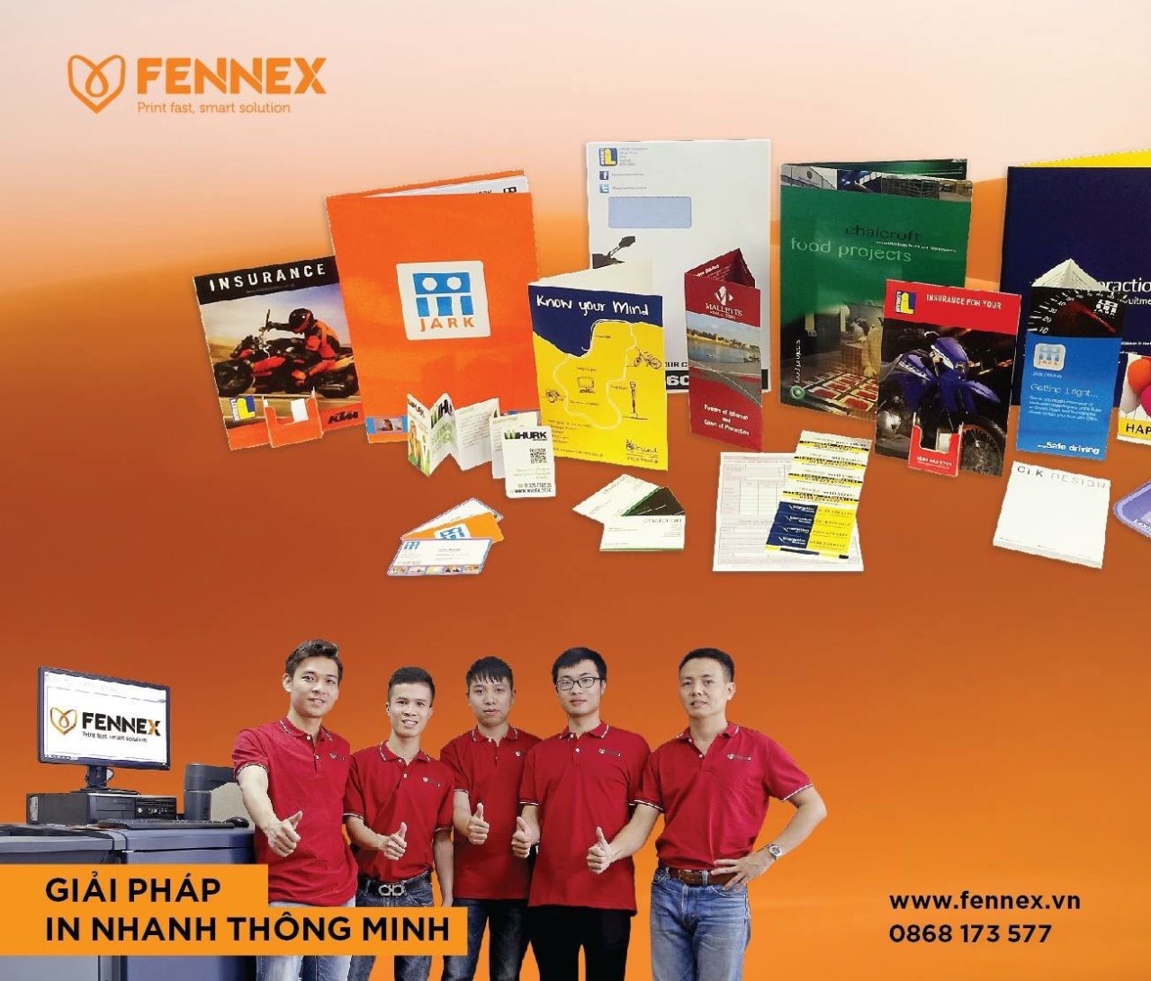 Công ty TNHH Fennex được thành lập từ những thành viên có bề dày kinh nghiệm hơn 25 năm trong lĩnh vực thiết kế & in ấn.